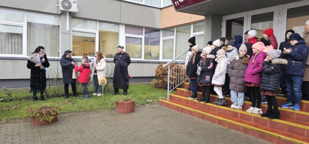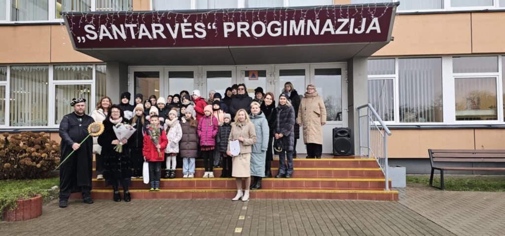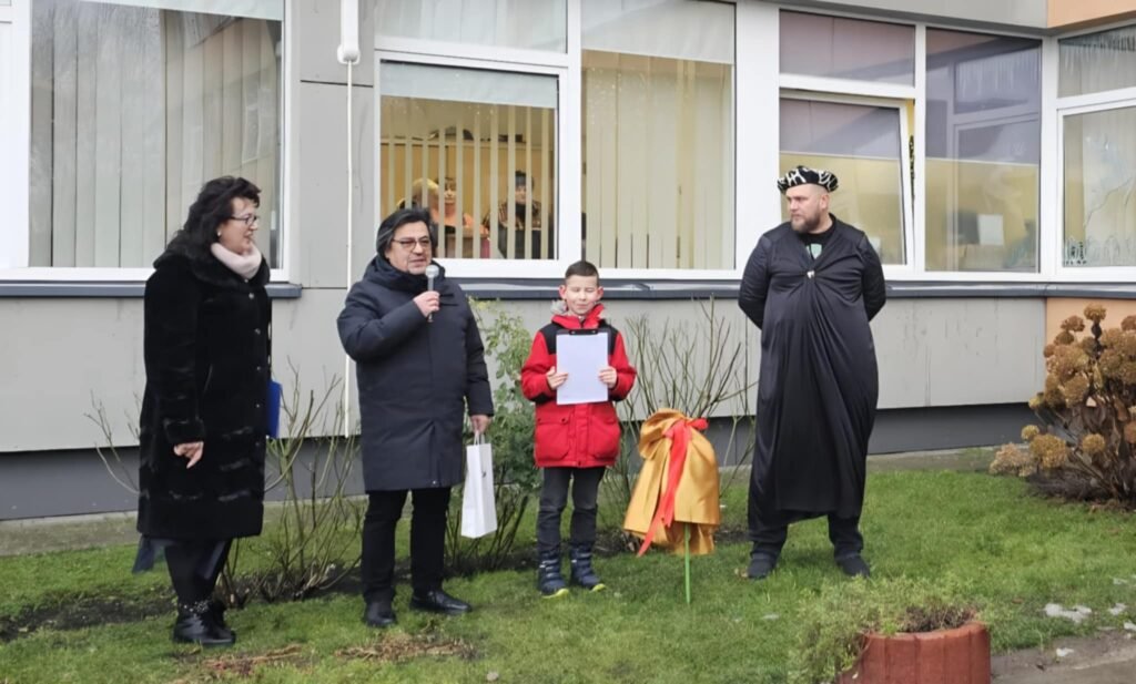 Šiandien „Santarvės“ progimnazijos kieme buvo iškilmingai atidengta Jegoro Nesterenko (4 kl.) saviraiškos centro keramikos studijos „Žiezdrė” mokinio, sukurta akmens masės mini skulptūra „Saulėgrąža“. Tai – ypatingas kūrinys, išdegtas net 1250 °C temperatūroje, atspindintis jaunojo autoriaus kūrybiškumą, kantrybę ir pagarbą mokyklos bendruomenei.