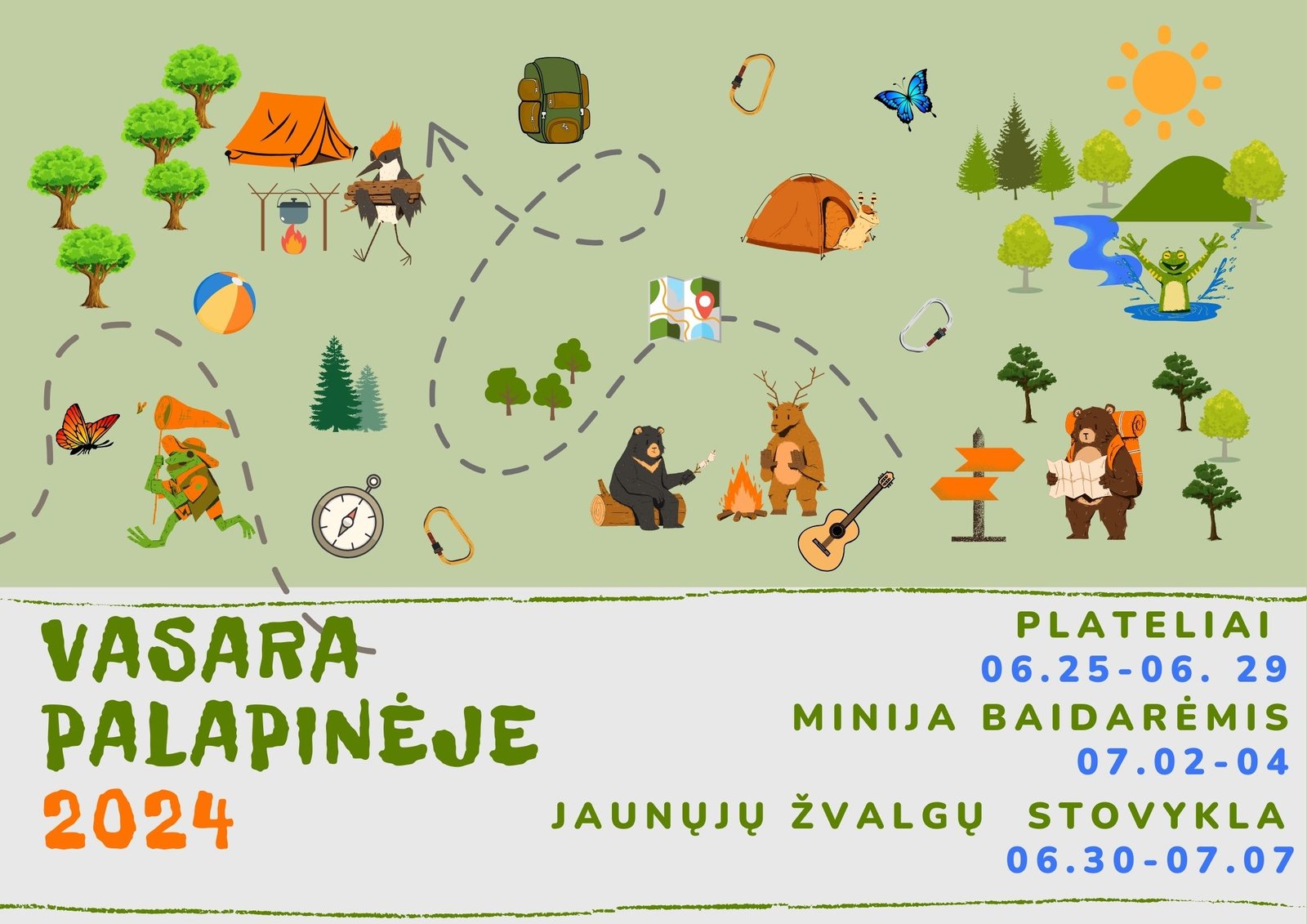Vasaros poilsio programa „Vasara palapinėje 2024” Penkių dienų spinduliniai pėsčiųjų žygiai iš Plokštinės stovyklavietės prie Platelių ežero, aplankant... birželio122024